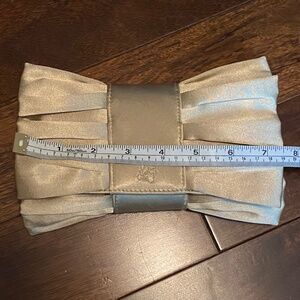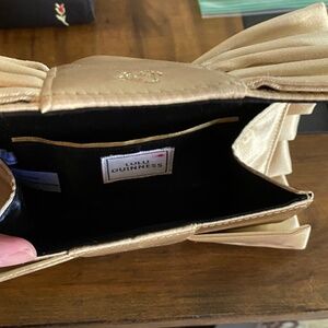 Preowned , gold sating evening purse from Lulu Guinness, the purse can be carried like a clutch.