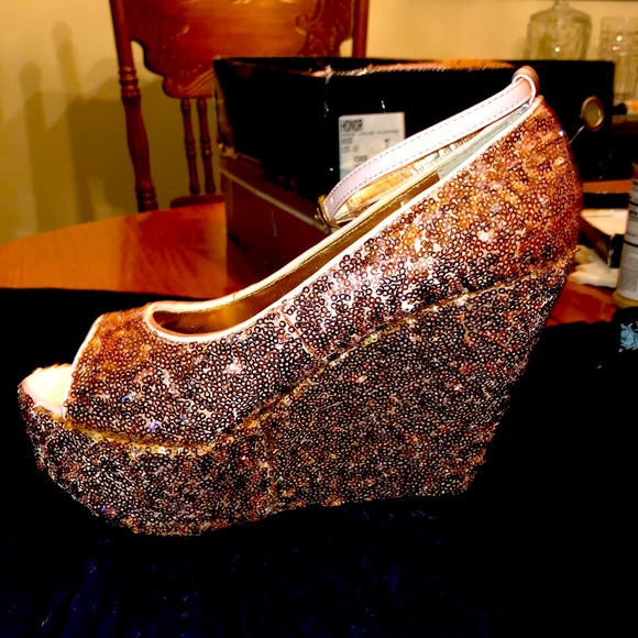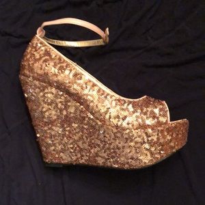 Gold sequin platforms