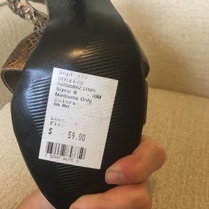 Very sexy snakeskin heels from Style & co. Size 7. Worn a very few times. The inside still looks perfect. There's some wear on the right sandal in one panel but it's barely noticeable. About a 3.5 inch heel. These are super sexy and the color and braiding make them very unique. Retail at 59.00. Message me with questions!