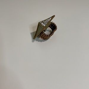 Really pretty gold color with gems on the front. The band stretches to put on and to your finger size. ❌ no trades