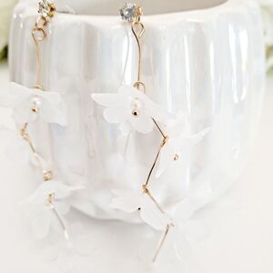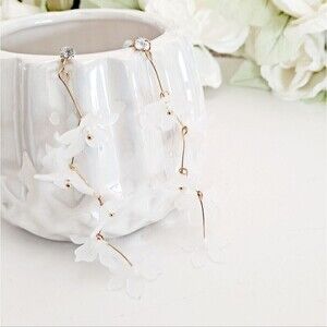 Women's Clear white flower Floral Gold long dangle statement bohemian Earrings, New no tags