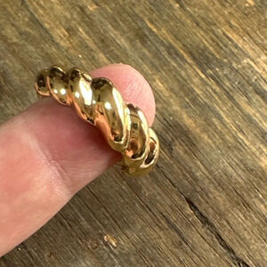 Gold steel cuff adjustable ring croissant shape/luxury/minimalist