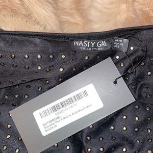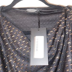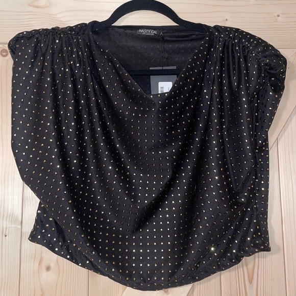 Shoulder pad t shirt gold stud black blouse never worn, new with tags, 100% polyester size US 6