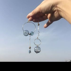 Gold titanium and green blown glass artisan asymmetrical boho art earrings new