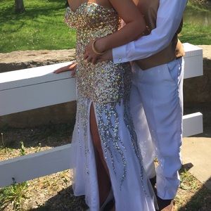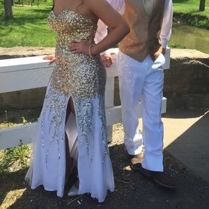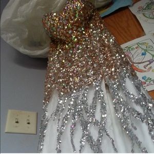 Rose gold to yellow gold to silver ombré. Beautiful beading. Size 8. Fits well. Hemmed for someone who is 5'6" without heels. Need to sell.