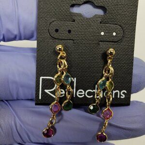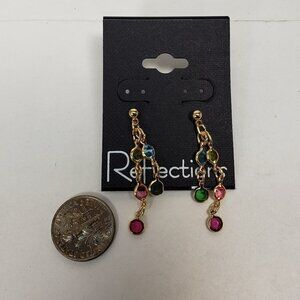 Gold tone Chain Drop Earrings Multicolor Crystal Dangles Stylish Women's Jewelry