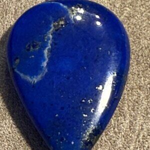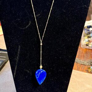 Handmade gold tone Lariat Necklace set with huge genuine lapis lazuli pendant 17" chain, pendant extends an additional 4". Preowned excellent condition.