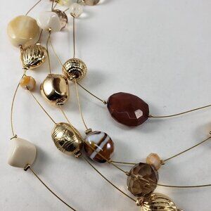 Gold tone Layered colorful Beaded Statement Necklace w/ Matching Earrings Women