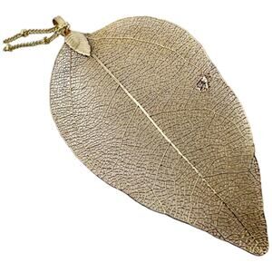 Necklace: Features a delicate gold leaf pendant on a fine chain