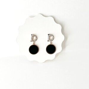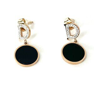 Gold tone Letter D with black drop Dangle Statement Earrings White Stones NWT