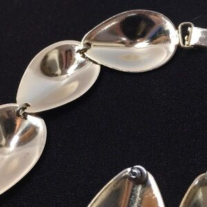 Gold tone metal necklace and earring set- no makers mark but has some weight to it - very pretty set - gently worn