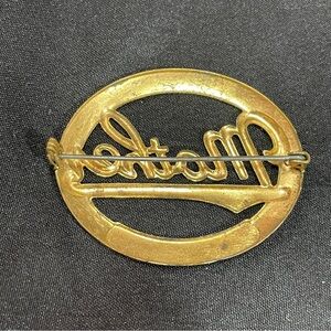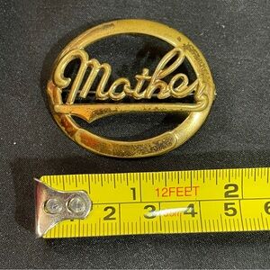 Elegant gold tone brooch featuring the word 'Mother'. Perfect for adding a personal touch to any outfit. Vintage