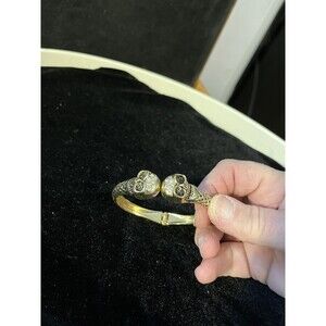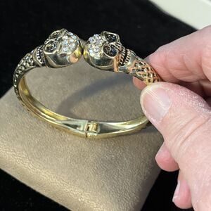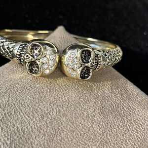 Gold tone Skulls with Rhinestones Clamper Bracelet.