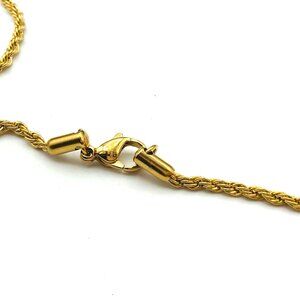 Gold tone rope chain necklace offers a refined touch to any outfit. Its durable lobster clasp ensures secure wear, making it stylish and functional.
