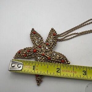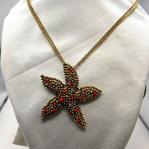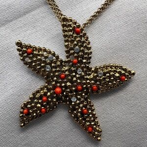 Gold tone Starfish pendant with faux diamonds and coral on a double strand chain