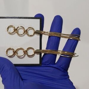 Gold tone Triple Hoops Drop Tassel Fringed Earrings - Women's Fashion Jewelry