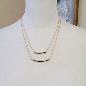 Gold tone Tube Trendy Necklace Double Layer, Adjustable to 18” with jump ring
