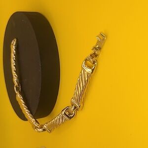 Gold tone bracelet. Pre-owned condition. No makers mark. The length of the bracelet is seven inches.