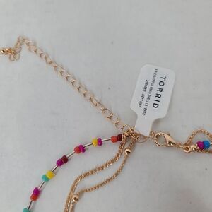 Gold tone chains colorful Beaded Tassel Necklace Layered 19in length Torrid Plus size jewelry. lobster clasp, 5in extender. Fashion Jewelry NWT Torrid. 10×13×1 3oz
