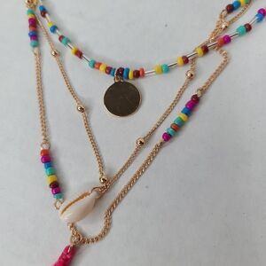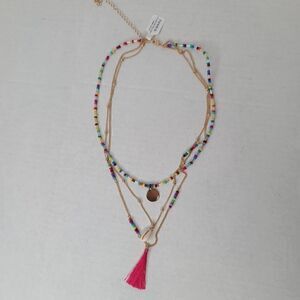 Gold tone chains colorful Beaded Tassel Necklace Layered 19in length Torrid Plus