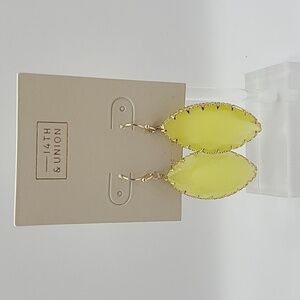 Gold tone dangle earrings with faux yellow stone by 14th and union