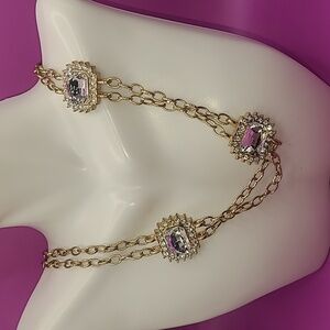 Gold tone double chain necklace. With faux diamonds. New without tags. No Maker's mark. The length of this necklace is thirty-four inches long.