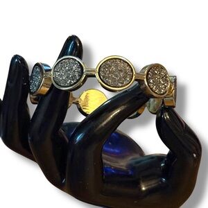 Gold tone druzy hinged bangle bracelet