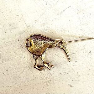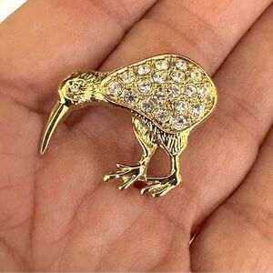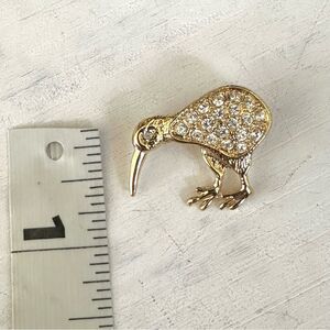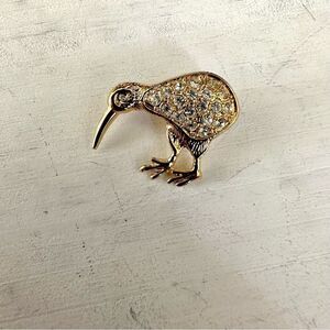 Gold tone kiwi bird rhinestone brooch/pin
