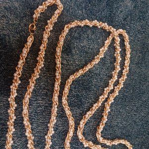 Gold tone necklace with artificial pearls 26" L This Gold Pearl Necklace is the key to any regal wardrobe. Elegant and understated, it's the perfect addition to any ensemble. With its sleek design, it's sure to make you look and feel divine!
