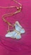 Gold tone ‘unmarked’ 16” pearl inlaid butterfly pendant and chain