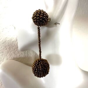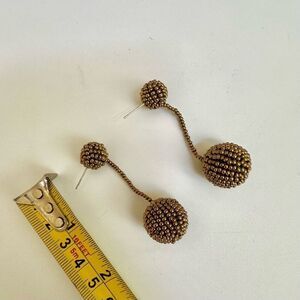 Gold tone beaded double ball drop post earrings