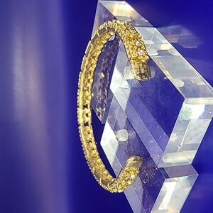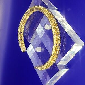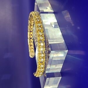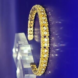 Gold toned cuff bracelet. Faux diamonds. Pre-owned condition. No maker's mark. Never worn.