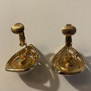 Gold tone faux pearls clip earring