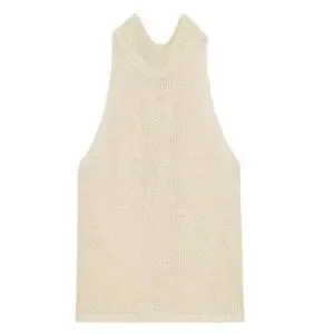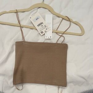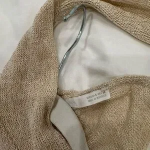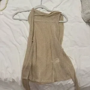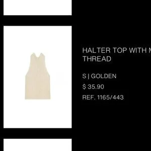 Beautiful top I bought from Zara and never wore because it doesn’t fit. I’m obsessed with it. High neck with scarf, shimmery gold. Sold out online.