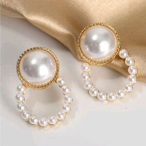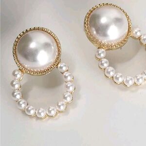 Gold white pearl earrings dainty casual or formal hoop stud small 💖2/$30