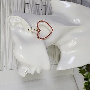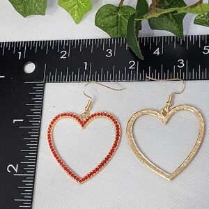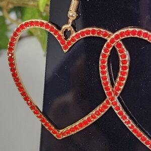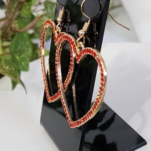 Gold with Red Crystal Stones Heart Drop Earrings Her