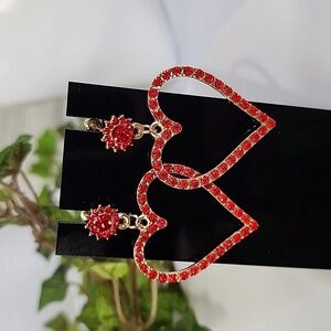 Gold with Red Crystal Stones Heart Post Earrings New