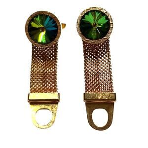 Gold wrap Cufflinks Rivoli style watermelon green & pink stones vintage 1970s