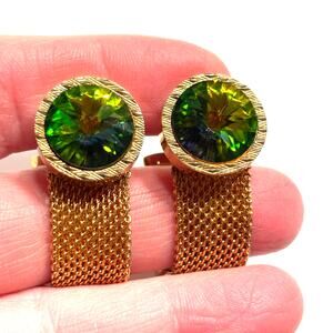 Vintage Mid Century 1970's Goldtone wrap cufflinks with Rivoli style watermelon green & pink stones. So eye-catching with sparkling colors in the textured round surround. No hallmarks - nice quality fashion jewelry. No apparent flaws - perfect gift for the well-dressed man!