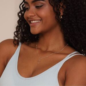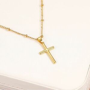 Gold 14k Gold Plated Beaded Cross Pendant Necklace