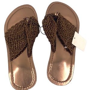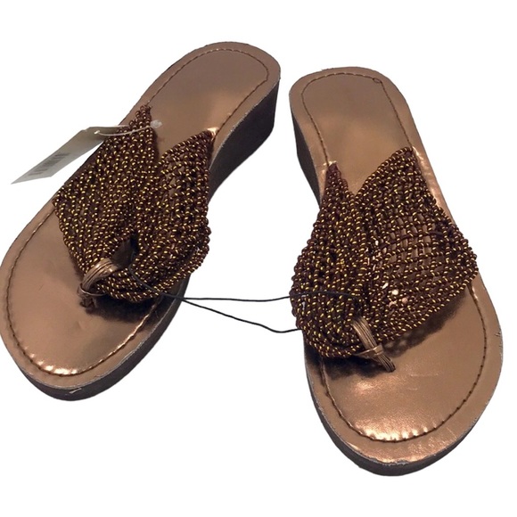 Gold/Brown 🩴 Cut Out Flip Flop Wedge Sandals