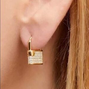 18k gold plated CZ padlock hoop huggie earrings Excellent quality!! These are lightweight for easy wear.