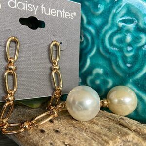 Gold Chain Pearl Waterfall Dangle Daisy Fuentes Fashion Earrings $16ea/3 for $25