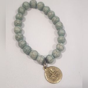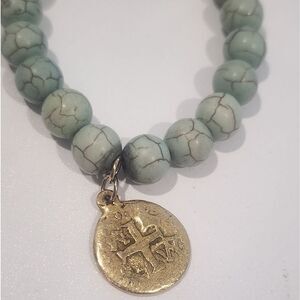 Elegant turquoise beaded bracelet featuring a gold charm. Perfect for adding a touch of sophistication to any outfit.