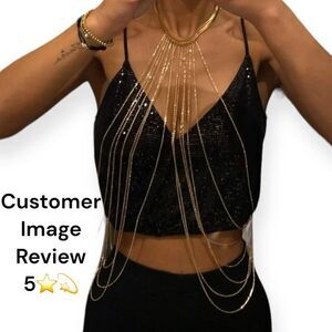 Chest chain to elevate your beach, party, resortwear, summer, vacation, club wear, nightlife, festival, bohemian! Elevate a theme-style wedding, to prom or other occasions to elevate your fashionista needs!
