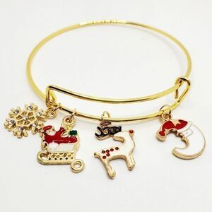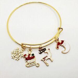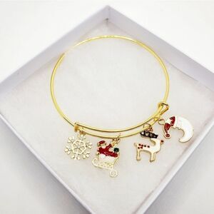 Just in time for Christmas, is this super cute Christmas Bracelet. This bracelet includes a gold rhinestone snowflake, a super cute sled, a reindeer to lead the sled and a moon to light the sky during the night trip of present giving. It is 2.5 inches wide and adjusts to 3 inches to fit most wrist sizes. It is gold plated stainless steel. The bracelet is also lead and nickel free. It is a perfect gift for a gift lover or a bracelet to add to your Christmas collection. This super cute bracelet is perfect for someone who has the Christmas spirit and who wants to showcase their love for bling!