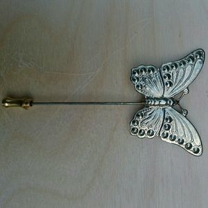 PIN, starting from where it meets the butterfly on the back, is 2.5 inch long with rubber cushioned brass end bit.