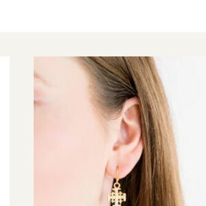 Elegant gold cross dangle earrings. Perfect for any occasion.