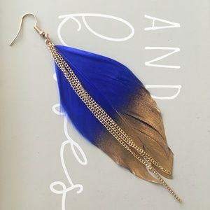 New with tags Gold-Dipped Royal Blue Chain Tassel Feather Earrings.
