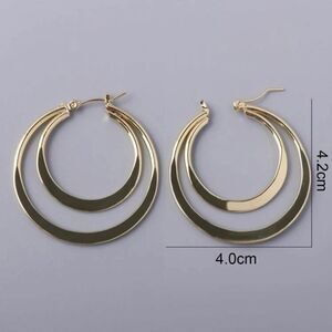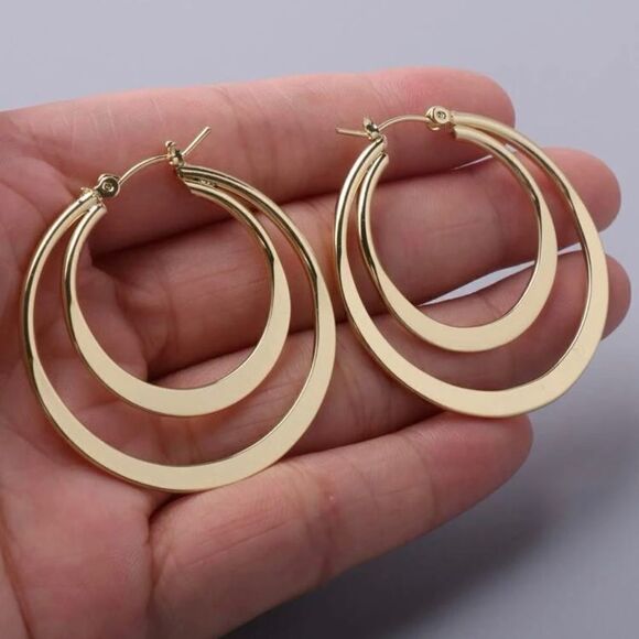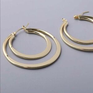 Ladies super cute gold colored stainless steel double hoop earrings. New with tags. Approximately 1.5" length. Lightweight. Made from hypoallergenic nickel and lead free metal!